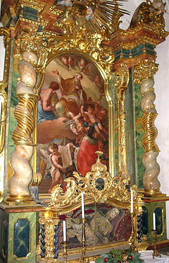 Der Nikolausaltar stammt -wie die anderen Seitenaltäre- aus