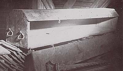 erhalten - ein langer Klappsarg. Er wurde 1973 im westlichen Landkreis