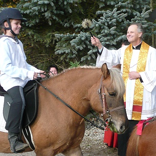Lothar Kittelberger begann die Andacht mit einer Lesung aus dem Buch Hiob, wo Gott dem Wehklagenden am Beispiel der Schönheit und der Mächtigkeit der Pferde seine Allmacht und seine Güte zeigt. Wir sollen aber bei aller Liebe zu den Tieren und zu Gottes Geschöpfen die Schöpfung nicht vergöttern, sondern sie annehmen als das Werk dessen, der alles erschaffen hat. In der geheimen Offenbarung des Johannes, wo der Sieg Gottes, der Sieg des Himmelreiches über die Welt geschildert wird, da wird Christus, den wir sonst auf einem Esel reitend kennen, mit einem Pferd in Verbindung gebracht. Er reitet auf einem weißen Pferd und hinter ihm die, die zu ihm gehören. Auch wir sind gerufen, zu den Siegern zu gehören. In der Vollendung der Ewigkeit dürfen wir hinter ihm her reiten.