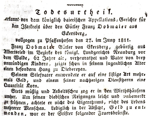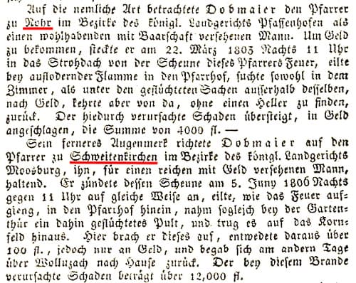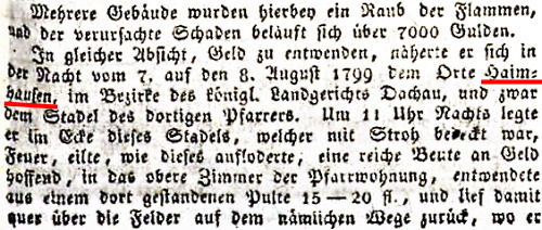 Pfarrhofbrand in Haimhausen 1799 und in OBERMARBACH 1808 Münchener politische Zeitung-mit allerhöchstem Privilegium vom 03.07.1811