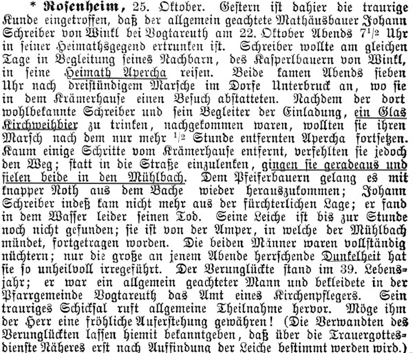 aus Fürth traf der Unfall auf der Brücke bey Unterbruck, und