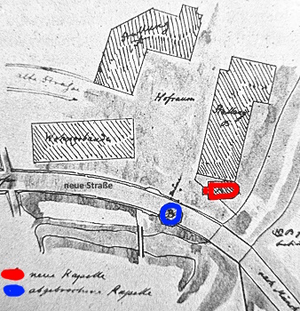 die Erinnerungstafel an die Erbauung eingemauert. Über dem Vorraum