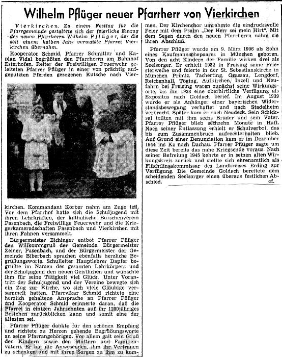Pflüger wurde am 31.Jan.1952 in Vierkirchen als Pfarrer investiert, am