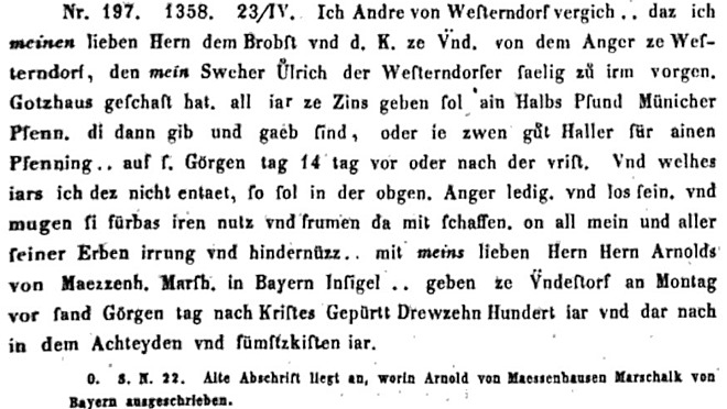 Hector Grafen Hundt, Die Urkunden des Klosters Indersdorf (Zinszahlung