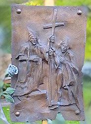 - Das kleine Relief unten ist ein Lamm-Gottes-Motiv. Die quadratische Grundplatte