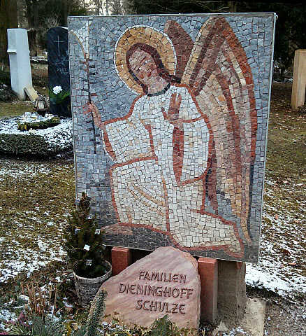ein Mosaik des Künstlers gesetzt, das einen knienden Engel mit
