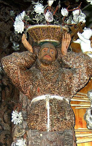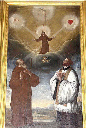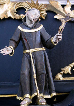 einem Kruzifix abgebildet, weil er in einer Vision Christus von einem