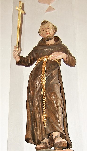 Franziskus ist in der braunen Kutte der Franziskaner abgebildet.