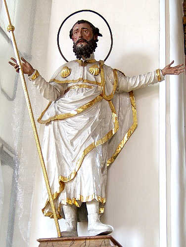 St.Jakobus der Ältere mit Wanderstock und Stiefeln