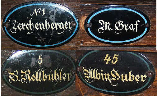 Namensschilder an den Kirchenbänken