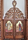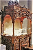 mit ebenfalls kunstvoll geschnitzter Außenseite (mit dem byzantinischen