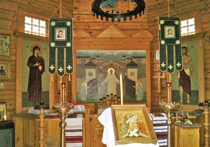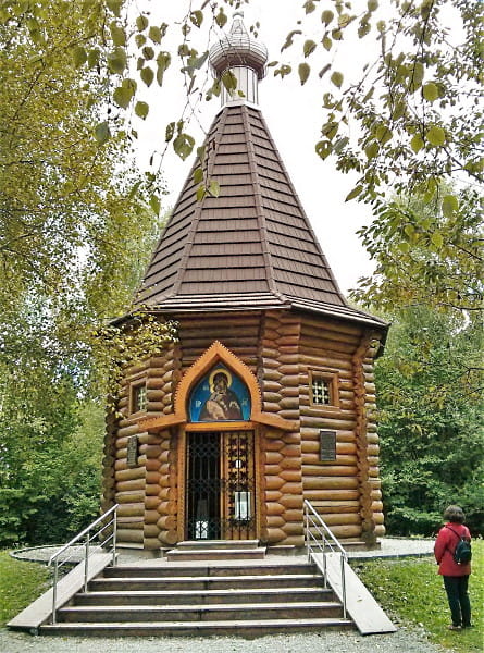 der KZ-Gedenkstätte die aus Holzstämmen errichtete russisch-orthodoxe