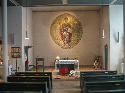 von dem stattlichen Mosaik im Altarbereich, das Christus als den