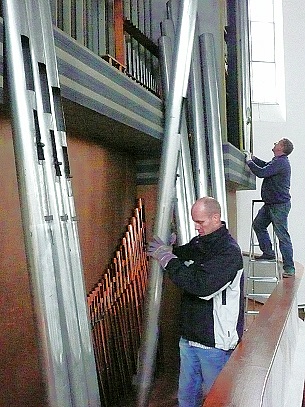 Abbau der alten Staller-Orgel in Mariä Himmelfahrt Am 13. Oktober 2013 erklang die Staller-Orgel zum letzten Mal im Gottesdienst (Bild oben). Am 16. Oktober wurde die alte Orgel aus der Pfarrkirche Mariä Himmelfahrt ausgebaut. Ein Sammler aus Holzkirchen hat die Orgel gekauft. Das klangschöne Instrument wurde im Jahr 1959 von der Firma Staller mit Nachkriegsmaterialien und dünnwandigen Pfeifen gebaut. Die verschlissenen 1.300 Ledermembranen waren brüchig, trocken und undicht geworden. Viele Elektrokontakte sind oxidiert und verbrannt. Große Verzögerung zwischen Tastendruck und dem Erklingen eines Tones waren die Folge, und das beeinträchtigte jedes Orgelspiel extrem.