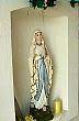 in einer Mauernische. Die Figur wurde als Lourdes-Madonna (im weiß-blauen