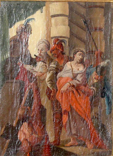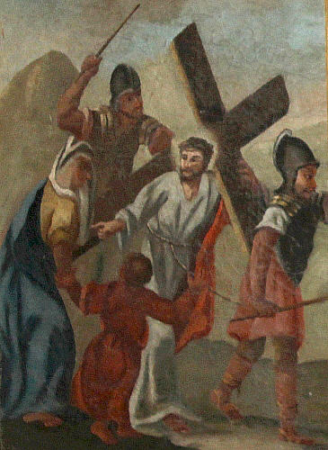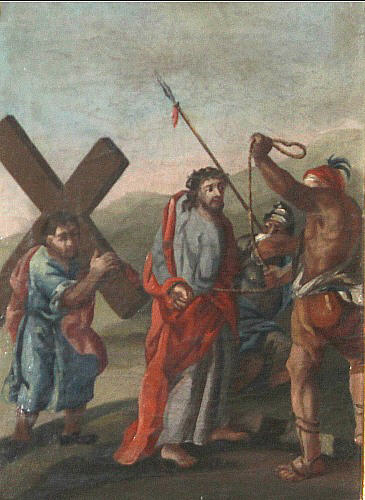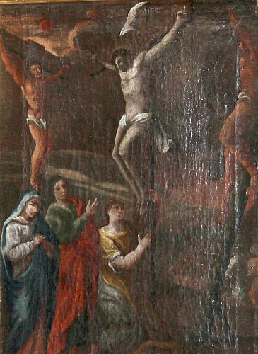- Mittelpunkt ist eine Kreuzigungsgruppe (1760): Christus am Kreuz