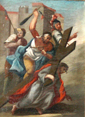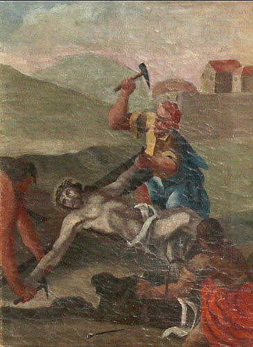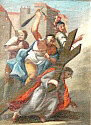 - unter dem Kreuz stehen nicht -wie sonst- Maria und der Apostel Johannes,