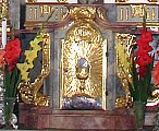 - auf dem Altarblatt in der Mitte das Gnadenbild "Maria