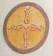 mit einem Kreuz in Form einer stilisierten Lilie (Apostelkreuze).