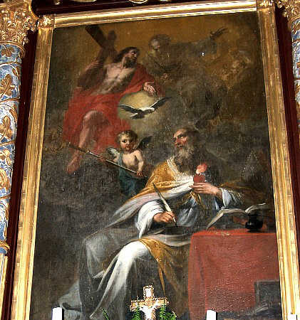 - St. Augustinus schreibt ein Buch mit göttlicher Hilfe (Altarblatt
