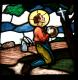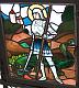 - St. Isidor als Betender am Feld (auf Glasgemälde im Langhaus,