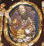- im Auszug ein geschnitztes Relief des segnenden Gottvaters mit Weltkugel.