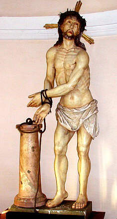 eine geschnitzte Nachbildung des gegeißelten Heilands und