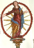 das Kind auf dem Schoß. Ihr Haupt ist von 12 Sternen umgeben.
