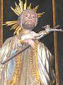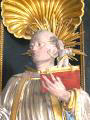 Figur des heiligen Petrus, des Patrons der Kirche, im Papstornat.