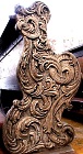 dessen vier Säulen mit Weinlaubverzierung berankt sind.