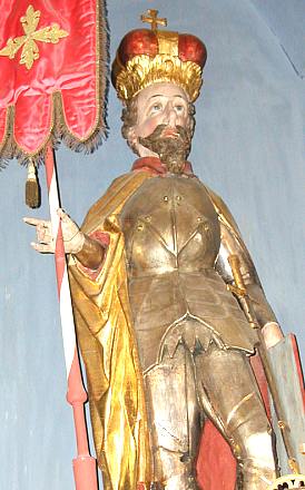 Castulus, nach der Legende der Kämmerer bzw. Speisemeister am Hof des Kaisers Diokletian. In seiner Wohnung neben dem Palast bot er als Christ den verfolgten Glaubensgenossen ein sicheres Versteck und war eifrig für den Glauben tätig. Er wurde angezeigt und der Präfekt ließ ihn martern. Er wurde kopfunter an einen Galgen gehängt und mit Ruten geschlagen. Als er dennoch standhaft blieb, warf man ihn an der Via Labicana lebend in eine Grube und schüttete sie mit Sand zu (deshalb auch Attribut Spaten).