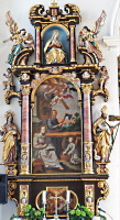 Assistenzfiguren sind links St.Martin und St.Barbara, rechts: St.Leonhard