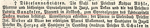 Pfarrer Gangkofer wird Synodalzeuge Allgemeine Zeitung v. 07.02.1890 |