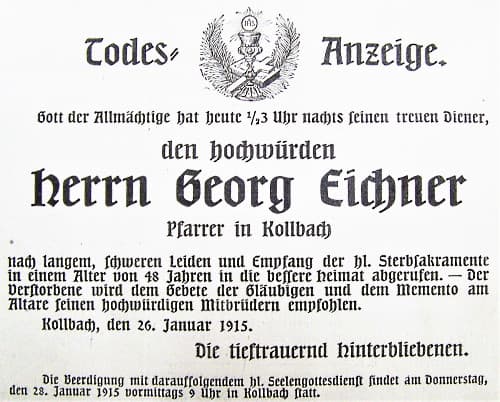Pfarrer Georg Eichner verstorben - Amperbote vom 30.1.1915 |