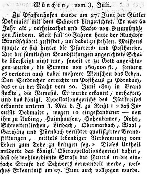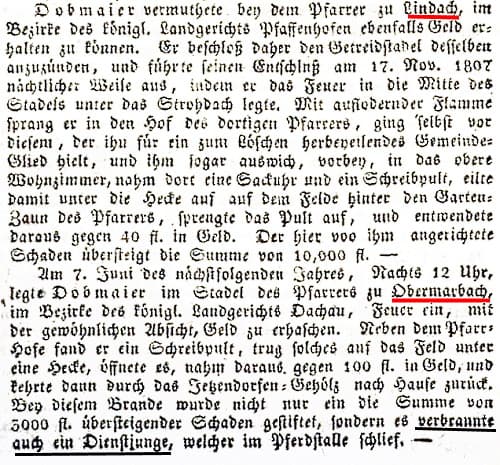 Pfarrhofbrand in Haimhausen 1799 und in OBERMARBACH 1808 Münchener politische Zeitung-mit allerhöchstem Privilegium vom 03.07.1811
