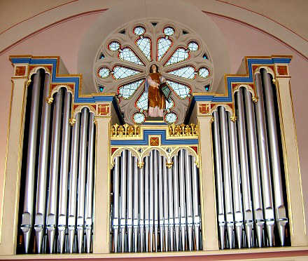 mit der orgelspielenden hl. Cäcilia (Patronin der Kirchenmusik).