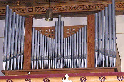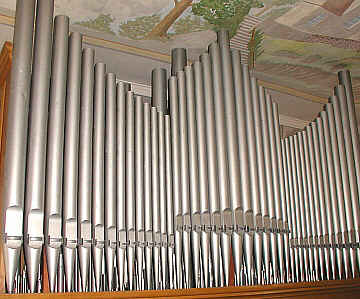 Pfeifen stehen rückwärtig, hinter dem Freipfeifenprospekt,