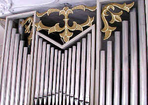 904 Pfeifen in 15 Registern. Der Prospekt besteht aus 45 Zinnpfeifen