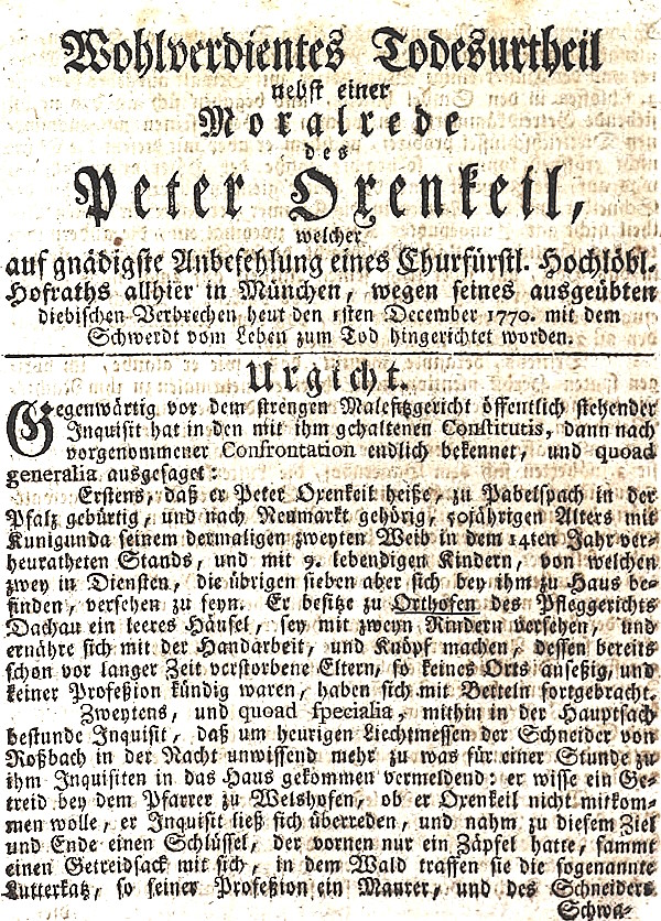 Münchnerisches Wochenblatt vom 25.11.1770 (Todesurteil)