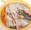 Auf vier Rundmedaillons um das große Mittelbild werden weitere