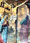 - Mittelpunkt des linken Altars ist eine Kreuzigungsgruppe;