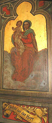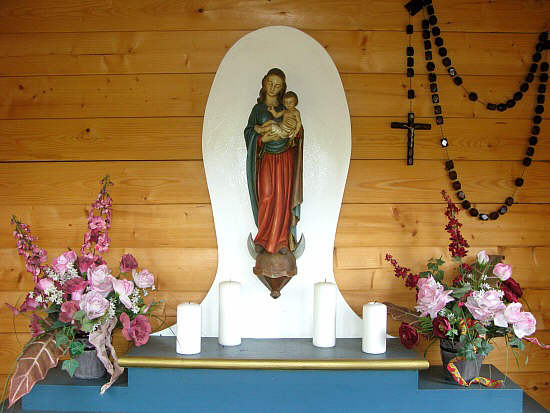 Gitter, eein kleiner blau bemalter Altar mit einer Marien-statue