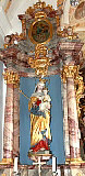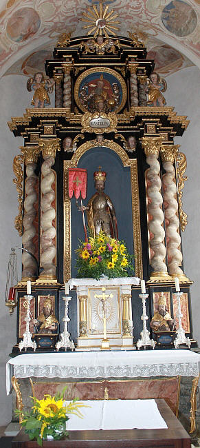 Auf ihm steht in der Mittelnische eine Schnitzfigur des hl. Kastulus
