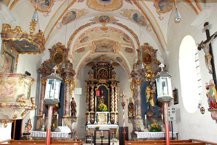 Die Figuren- und Bilderausstattung in der Kirche zeigt Heilige,