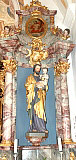 der rechte Seitenaltar dem hl.Josef. Die entsprechenden Figuren zwischen