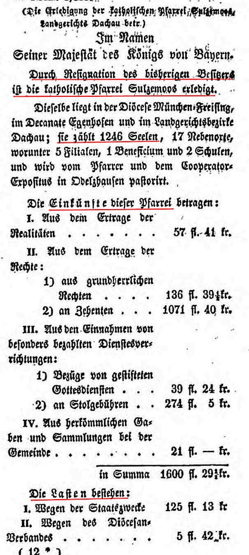 war von 1831 bis zu seiner Resignation 1848 Pfarrer in Sulzemoos. Recherchiert von Hans Schertl