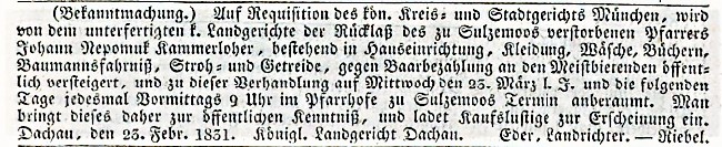 der Vermögensgegenstände von Pfr.Kammerlohr Recherchiert von Hans Schertl Versteigerung