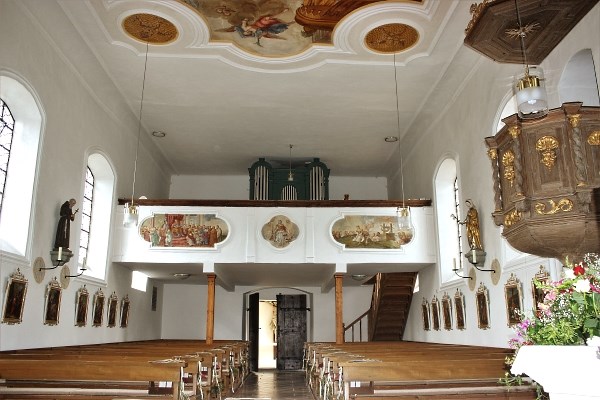 Die Innenseite der Emporenbrüstung ist mit alten Apostelbildern