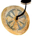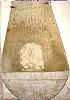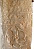 Wand eingelassen, z.B. eine stark verwitterte Rotmarmortafel mit Kelch