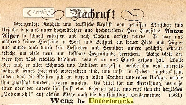 Bericht über Hilfe aus Feuersgefahr für Pilger aus Weng